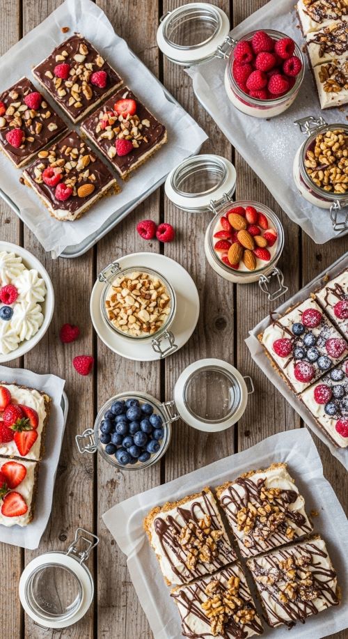 The finishing touch is where creativity shines. Fresh fruit like berries, sliced bananas, or kiwi brightens the dessert. Crunchy additions such as nuts, granola, or cookie crumbs add texture. Sweet drizzles like melted chocolate, caramel, or honey elevate the flavors, and edible flowers or sprinkles make your desserts Pinterest-worthy. Cut into bars, spoon into jars, or serve in individual cups. No-bake desserts always look as good as they taste.
