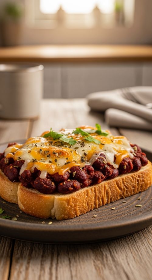 Toast becomes a filling meal when layered with beans and cheese. Warm beans first for better texture.