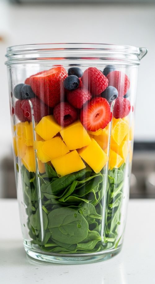 How you add ingredients affects the smoothie’s texture. Start with liquids at the bottom to prevent the blender from getting stuck. Add soft fruits like bananas, avocado, or mango next to help create a creamy base. Frozen fruits and leafy greens go in after, keeping the smoothie thick without compromising texture. Finally, add extras such as seeds, nut butter, or protein powder before blending.