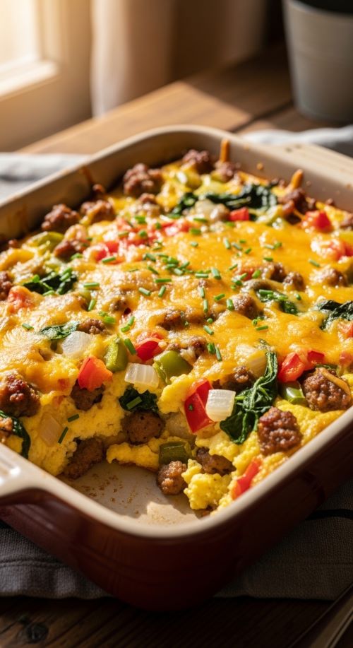 A breakfast casserole feeds multiple people with minimal effort.