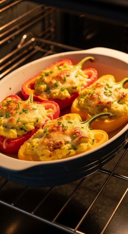 Stuff halved peppers with eggs and cheese and bake until set.