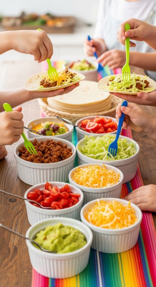 DIY taco night is interactive and fun. Cook ground beef or chicken with mild seasoning and set out bowls of toppings. Kids can build their own tacos with cheese, lettuce, tomatoes, or beans. It’s a great way to teach portion control and encourage trying new toppings. Offer soft and hard shells for variety. This meal is affordable, easy to prepare, and creates a playful family dinner. Leftover taco fillings can also become burrito bowls the next day.