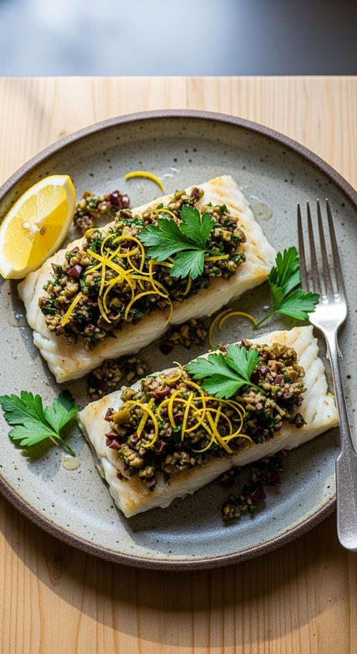 Baked Cod with Olive Tapenade