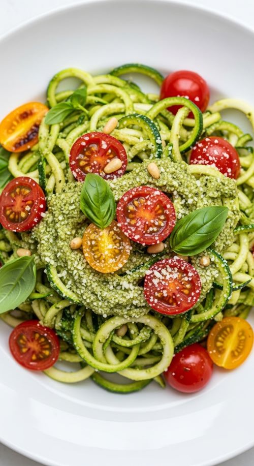 Use spiralized zucchini as a pasta substitute and toss with homemade basil pesto. Pesto made with olive oil, garlic, and nuts provides healthy fats while keeping sodium low. Add cherry tomatoes or roasted vegetables for extra texture. Budget-friendly tip: make pesto in batches and store in the fridge. You can also use frozen zucchini if fresh isn’t available. This dish is fast to prepare, satisfying, and packed with flavor without salt. Garnish with a sprinkle of Parmesan if desired.