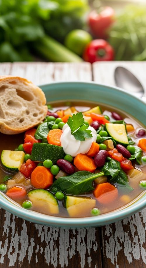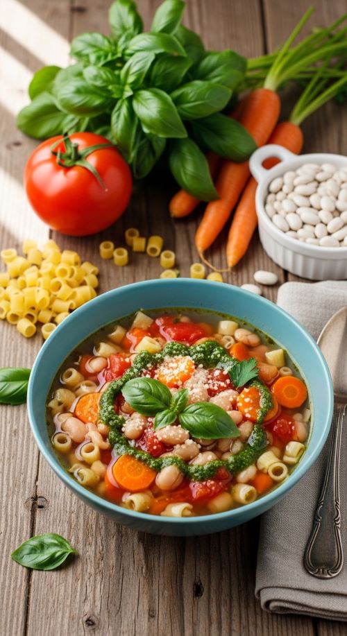 Minestrone soup combines vegetables, beans, and pasta into a filling bowl. Cook onion, garlic, carrots, and celery in a large pot.