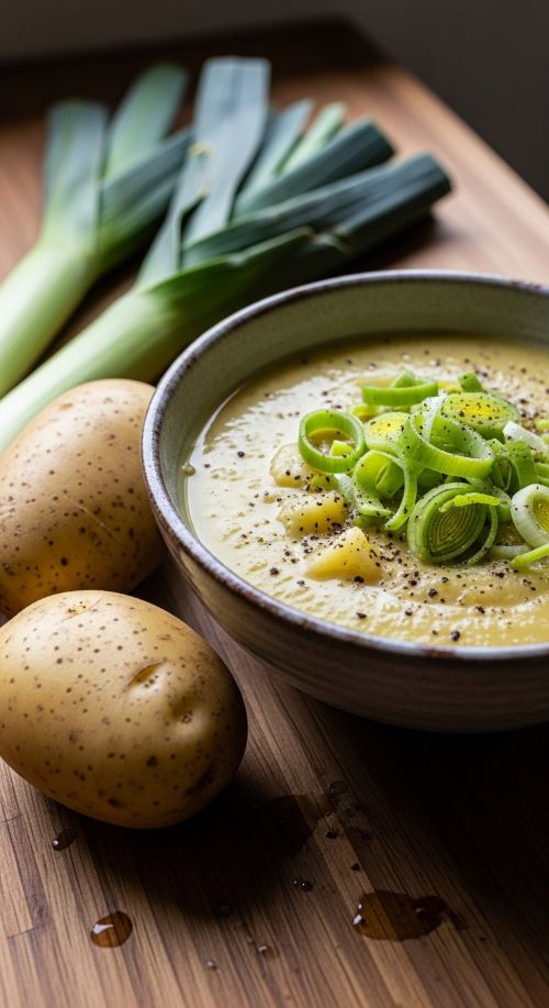 Potato and leek soup offers a rich taste with only a few ingredients. Slice leeks and cook them slowly in butter or oil until soft. Their mild onion flavor creates the base of the soup.