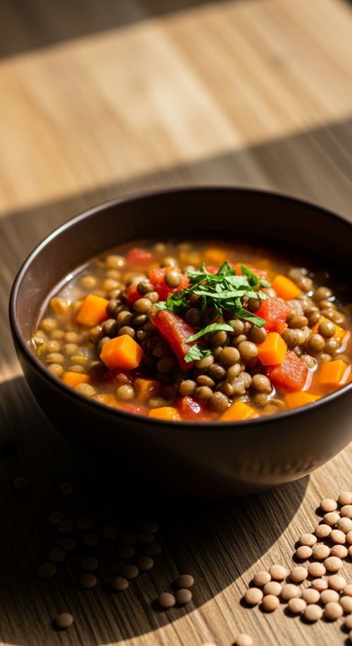 Add dried lentils, canned tomatoes, and broth. Allow everything to simmer until the lentils soften. The soup thickens naturally as the lentils cook.