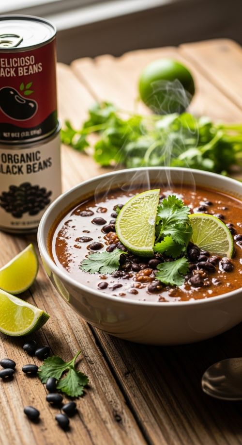 Add canned black beans and vegetable broth. Let the mixture simmer for several minutes.
