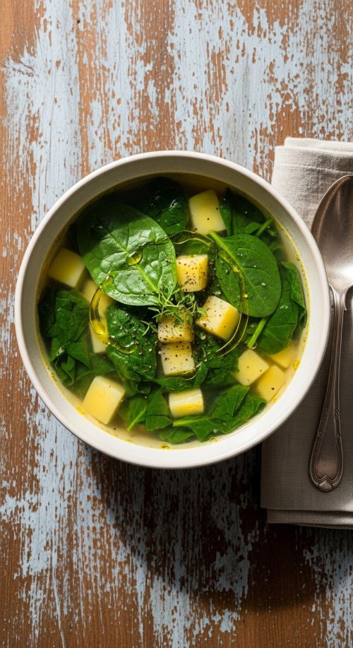 Cook diced potatoes in broth until soft. Add spinach and simmer briefly.