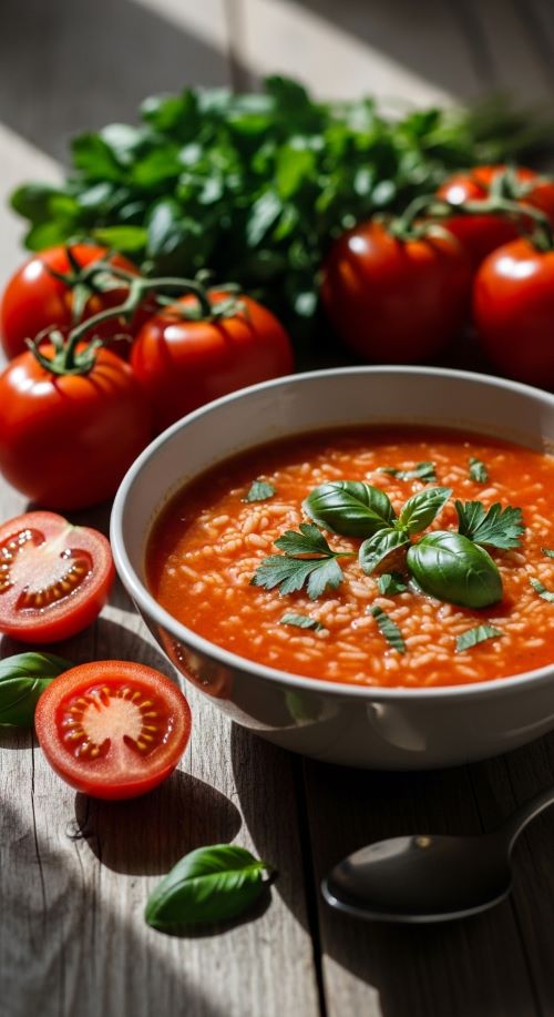 Tomato rice soup uses simple pantry ingredients. Simmer canned tomatoes with broth and rice until the rice softens.