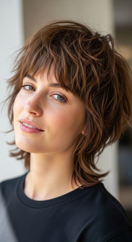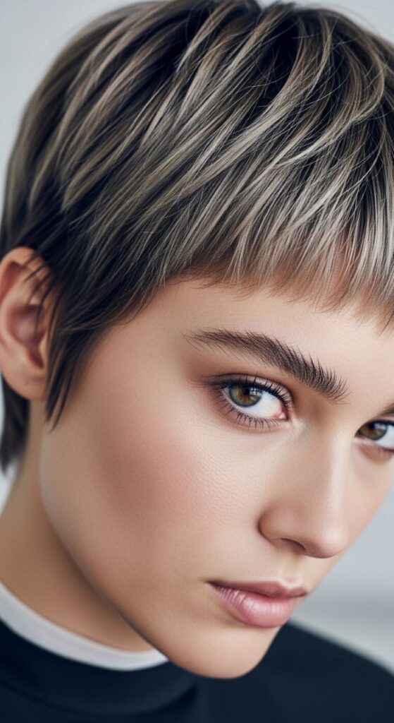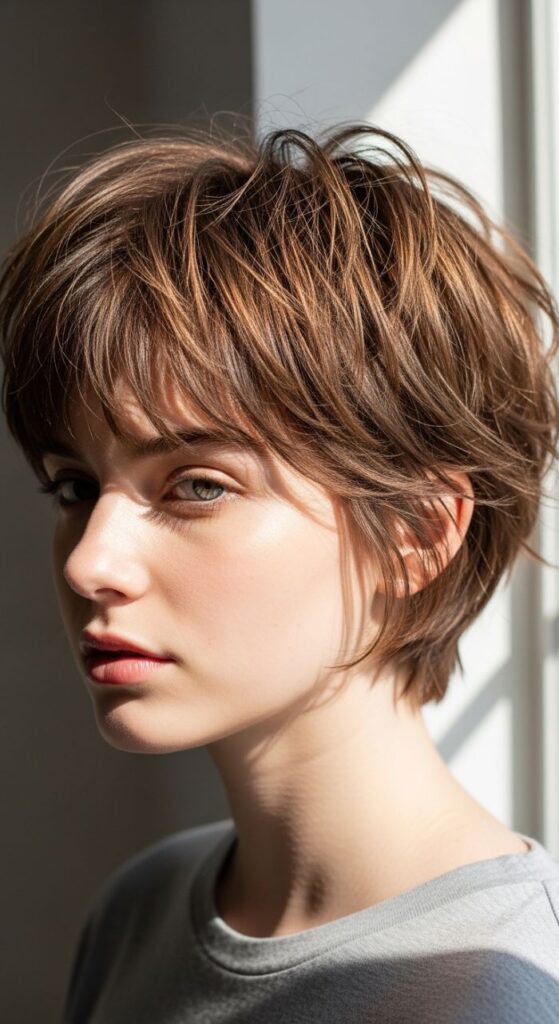The shaggy pixie cut features uneven layers that create a relaxed and slightly messy look. This style is easy to manage because it doesn’t rely on perfect styling. You can simply scrunch your hair and let it fall naturally. This reduces the need for multiple products, saving money. It’s ideal for a laid-back style that still looks stylish without extra effort.