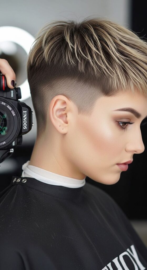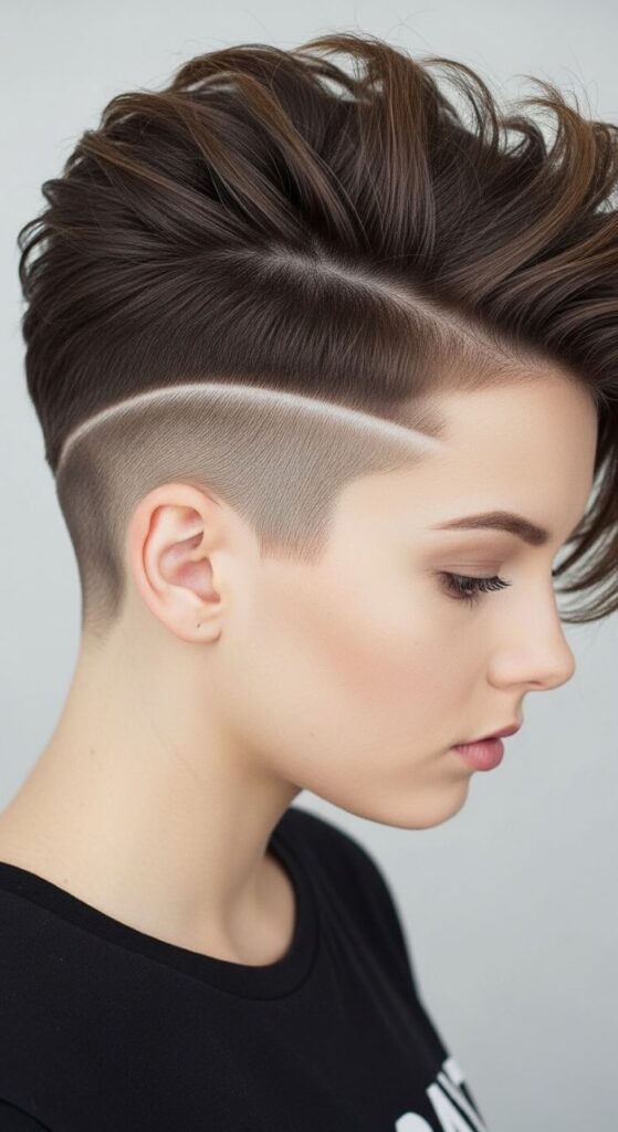 The undercut pixie is a bold choice that combines very short sides with a longer top section. This contrast creates a clean and striking appearance that stands out. The shorter sides make the haircut feel light and comfortable, especially in warm weather. The longer top gives you flexibility to style it in different ways, such as pushing it back, spiking it up, or leaving it natural. Maintaining the undercut at home is possible with a clipper. Use a guard to keep the length even and trim regularly to avoid uneven growth. This helps you reduce salon visits and save money. The undercut pixie pairs well with casual outfits and gives a sharp, modern feel without requiring daily effort.