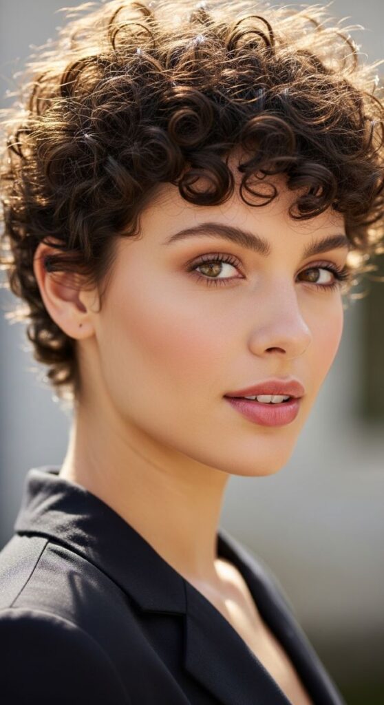 The curly pixie works with your natural hair instead of fighting it. Keeping curls short makes them easier to manage and quicker to dry. This style reduces frizz and keeps your hair looking neat. After washing, use your fingers to shape the curls while they are damp. A small amount of leave-in conditioner helps keep them soft. Avoid heavy products because they can weigh the curls down. At home, trim curls one by one instead of cutting large sections. This helps maintain the natural pattern. This cut highlights your curl texture and gives a light, bouncy feel. It’s perfect for those who want a natural look without spending much time styling. With simple care, your curls stay defined and easy to manage.
