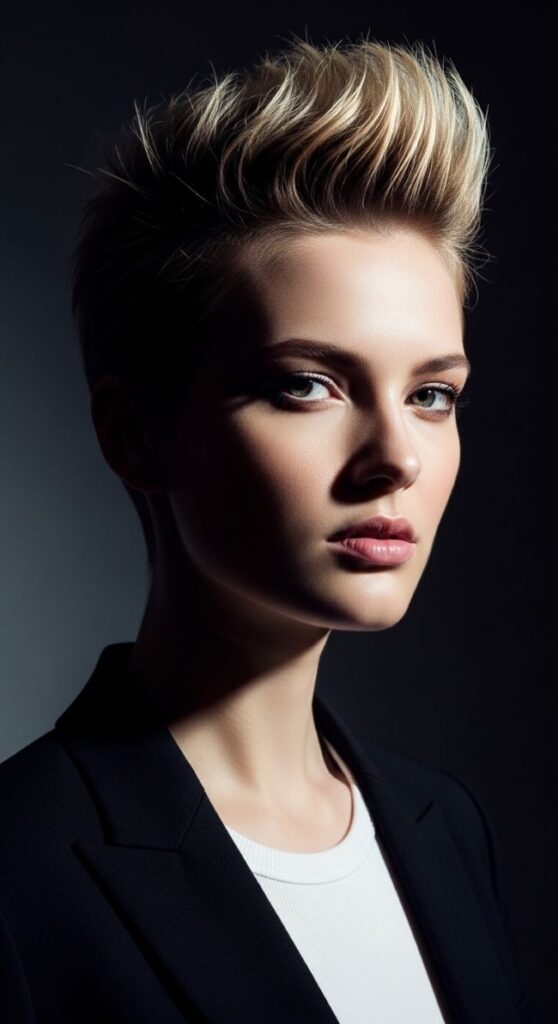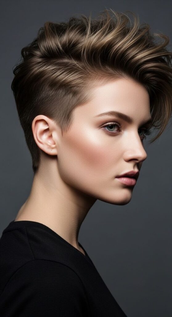 The fade pixie blends very short sides into a slightly longer top. This creates a clean and modern shape. You can maintain the fade at home with clippers and different guard sizes. Practice helps improve blending. This style stays neat with minimal effort. It’s perfect for those who like sharp lines and structure.