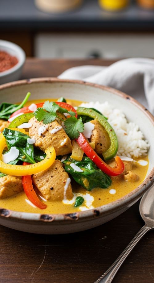 Coconut chicken curry is creamy without dairy. Sauté chicken, add coconut milk and curry spices, then simmer with veggies. Serve over cauliflower rice for a hearty meal. Tip: buy coconut milk in bulk cans—it keeps for a long time. This recipe is warm, comforting, and full of flavor, perfect for a cozy dinner.